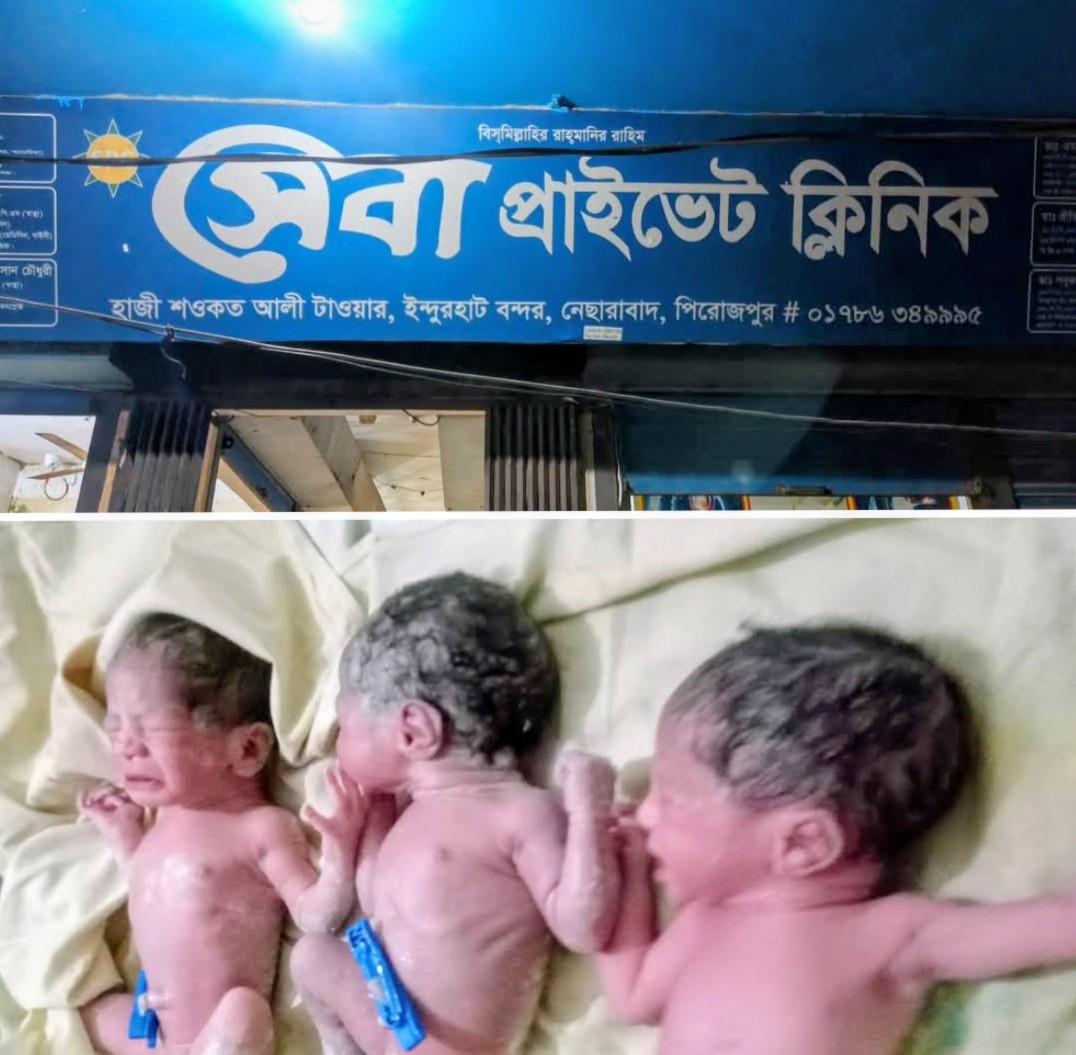 অস্ত্রোপচার / সিজারের মাধ্যমে এই শিশুগুলো ভূমিষ্ট হয়। নেছারাবাদ এলাকার সুপরিচিত ডা. প্রিতীশ বিশ্বাসের তত্বাবধানে এই গুরুত্বপূর্ন বিশ্বয়কর অস্ত্রপচারটি সম্পন্ন হয়। সদ্য জন্ম নেওয়া তিনটি শিশুই সুস্থ রয়েছে। ভূমিষ্ট হওয়া তিন কন্যা সন্তানের পিতার নাম মোঃ