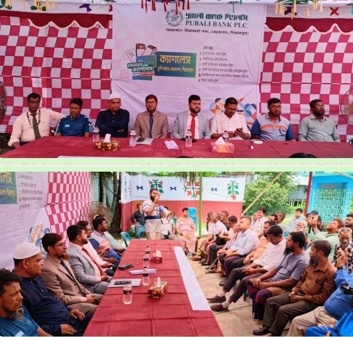 সোহেল রায়হান, জেলা প্রতিনিধি (পিরোজপুর)ঃ বুধবার (১৫ এপ্রিল) বেলা ১১টায় পিরোজপুরের নেছারাবাদ উপজেলার 'পূবালী ব্যাংক পিএলসি' মিয়ারহাট শাখার উদ্যোগে স্থানীয় ডুবি বাজারে “ক্যাশলেস ব্যাংকিং ক্যাম্পেইন ও আলোচনা সভা” অনুষ্ঠিত হয়েছে।