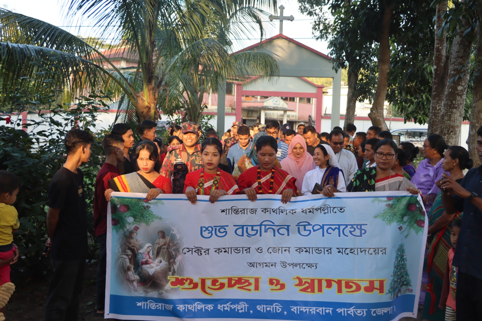 অনুষ্ঠানে বিজিবি বান্দরবান সেক্টর কমান্ডার কর্নেল মুহাম্মদ রুবায়াত জামিল, বিএসপি, খ্রিস্টান সম্প্রদায়ের ধর্মীয় নেতৃবৃন্দ ও স্থানীয় খ্রিস্টান জনগোষ্ঠীর সঙ্গে শুভেচ্ছা ও মতবিনিময় করেন। তিনি বড়দিনের তাৎপর্য তুলে ধরে বলেন, যিশু খ্রিস্টের শিক্ষা মানবপ্রেম, ত্যাগ ও শান্তির প্রতীক, যা সাম্প্রদায়িক সম্প্রীতি, সামাজিক ঐক্য এবং শান্তিপূর্ণ সহাবস্থানের ক্ষেত্রে গুরুত্বপূর্ণ ভূমিকা রাখে।