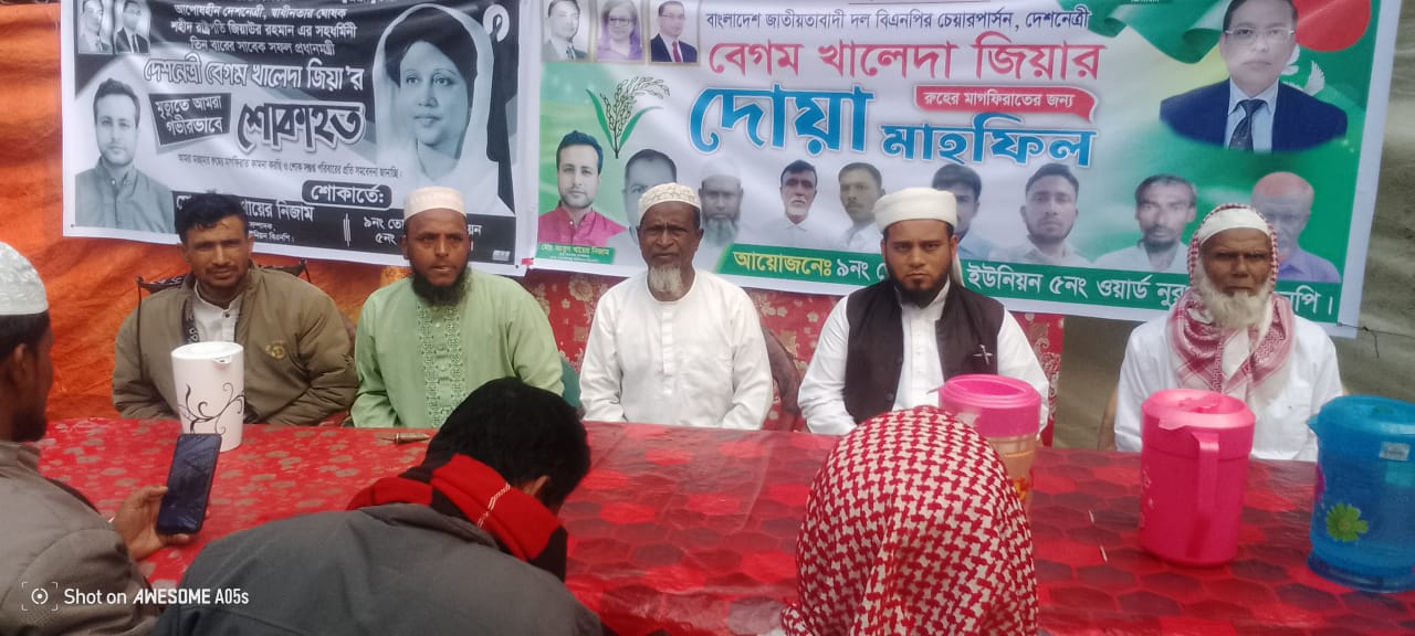অনুষ্ঠানের শেষে বেগম খালেদা জিয়ার রুহের মাগফিরাত কামনায় বিশেষ মোনাজাত পরিচালনা করেন কারী জহিরুল ইসলাম। দোয়া অনুষ্ঠান শেষে এলাকার এতিম ও অসহায় মানুষের মাঝে খাবার বিতরণ করা হয়।