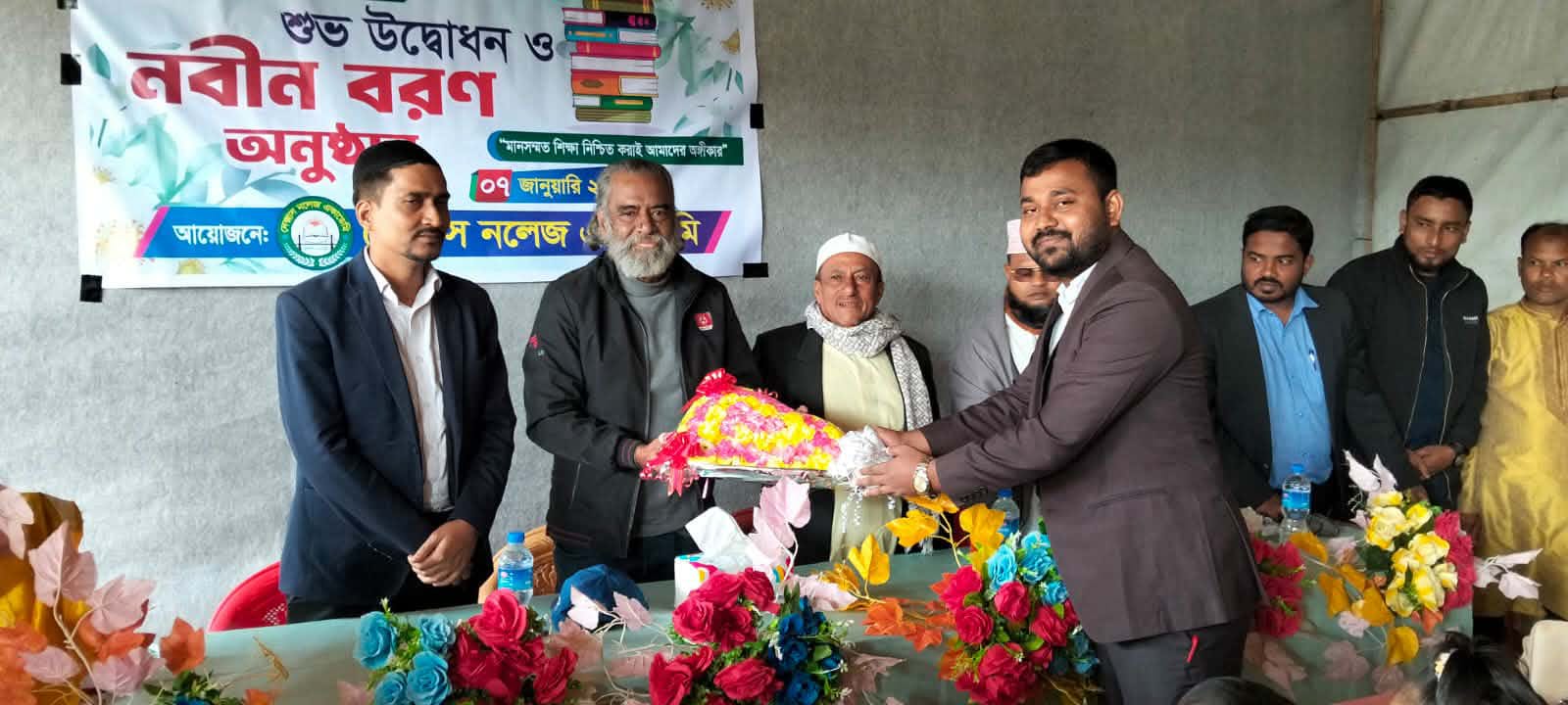 নিজস্ব প্রতিনিধি( কামরুন তানিয়া)ঃ আজ তথা ০৭/০১/২০২৫ ইং তারিখে সকাল এগারোটার দিকে থাইংখালীর নতুন একাডেমি অফিস ভবনে শুভ উদ্বোধন এবং নবীন বরণ অনুষ্ঠান অনুষ্ঠিত হয়। অনুষ্ঠানটির সঞ্চালনার দায়িত্বে ছিলেন নুরুল আবছার।জনাব হাফেজ হাফেজ হাকিম পবিত্র কোরআন দেওয়াতের মাধ্যমে উক্ত অনুষ্ঠানের শুভ সূচনা করেন।অনুষ্ঠানটির স্বাগত বক্তব্য রাখেন উক্ত একাডেমির প্রতিষ্ঠাতা প্রধান শিক্ষক জনাব আরিফ মামুন।অনুষ্ঠানের প্রধান অতিথি হিসেবে উপস্থিত ছিলেন বালুখালীর কবি,সাহিত্যিক, সমাজ সেবক এবং রাজবংশের প্রবীণ প্রিয় মুখ জনাব একরামুল কবির বাবলু মিয়া। উক্ত অনুষ্ঠান অনুষ্ঠিত স্বাগত বক্তব্য রাখেন জনাব আরিফ মামুন।প্রধান অতিথি হিসেবে জনাব একরামুল কবির বাবলু মিয়া বক্তব্য রাখেন। তিনি তার বক্তব্যে শিক্ষা ব্যবস্থার মান উন্নয়নে নতুন তথ্য প্রযুক্তির গুনগত মান উন্নয়ন এবং ইংরেজি ভাষা,ইংরেজি শিক্ষার মান বিশ্বের অন্য দেশের সাথে সংযুক্তি রেখে এগিয়ে নিয়ে যাওয়ার আহবান করেন উক্ত একাডেমির প্রতিষ্ঠানের সকলের প্রতি। তিনি বলেন আজকের শিশুরাই আগামী দিনের ভবিষ্যত।কাজেই আমাদের উচিত তাদেরকে সঠিক শিক্ষা দানের মাধ্যমে তাদের মনস্তার্তিক জ্ঞান অর্জনে সহায়তা প্রদান করা। এছাড়া আরও অনেকে গুরুত্বপূর্ণ বক্তব্য রাখেন। বক্তরা হলেন জনাব মাস্টার সাব্বির আহমেদ, জনাব হাবিব উল্লাহ, জনাব আব্দুল্লাহ আল হারুন, জানাব রিদুয়ানুল আজিজ, জনাব আকরাম ফারুক শাকিল। উক্ত অনুষ্ঠানটানটি সমাপ্তি ঘোষণা করেন সভাপতি সাহেব জনাব আরিফ মামুন।