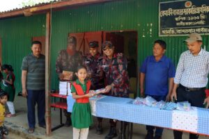 ভোটকেন্দ্র পরিদর্শনকালে সেক্টর কমান্ডার দুর্গম ও পাহাড়ি অঞ্চলে অবস্থিত উক্ত বিদ্যালয়ের দরিদ্র ও অসহায় শিক্ষার্থীদের মাঝে শিক্ষা সহায়ক সামগ্রী বিতরণ করেন। এছাড়াও তিনি একজন এতিম ও অভিভাবকহীন পাহাড়ি শিক্ষার্থীকে এককালীন শিক্ষাবৃত্তি প্রদান করেন।