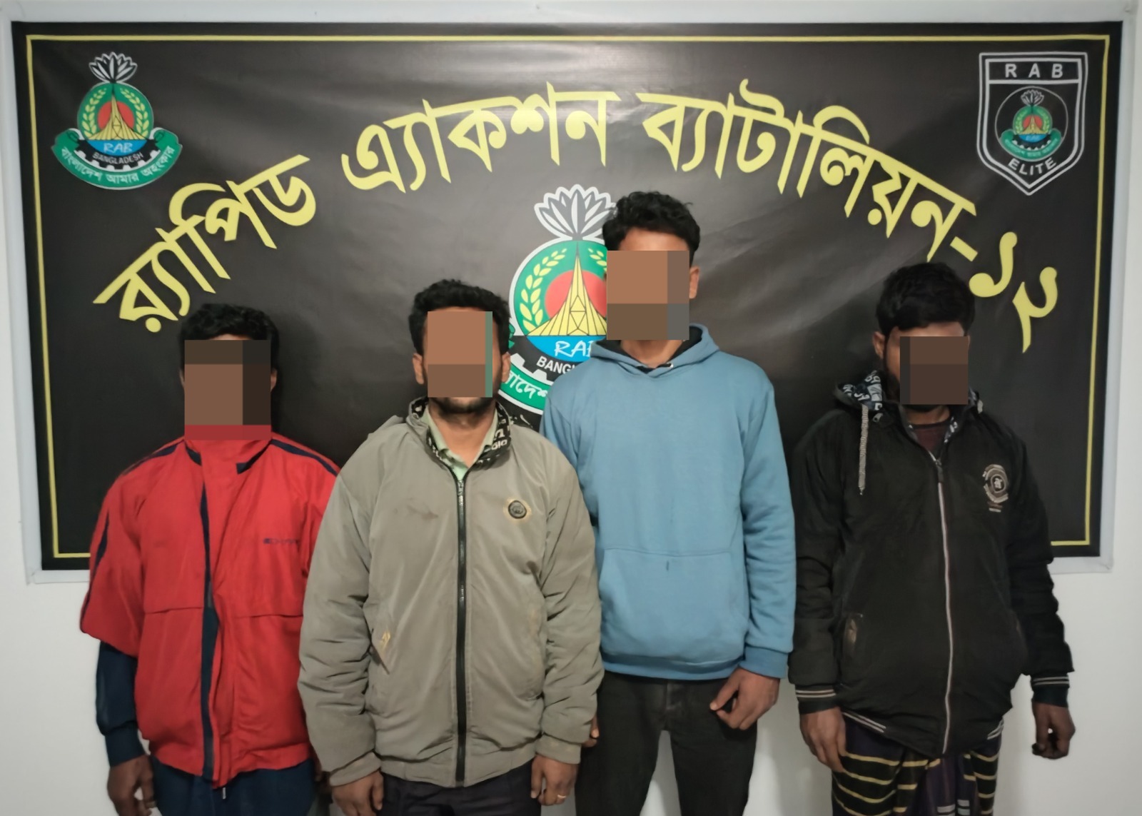 এরই ধারাবাহিকতায় র্যাব-১২ এর অধিনায়কের দিকনির্দেশনায় গত ২৮ জানুয়ারি ২০২৬ দুপুর ১টা ৩০ মিনিটে বগুড়া সদর থানাধীন রাজাবাজার এলাকা এবং শাজাহানপুর থানাধীন আড়িয়া বাজার এলাকায় অভিযান পরিচালনা করে চারজনকে গ্রেপ্তার করা হয়।