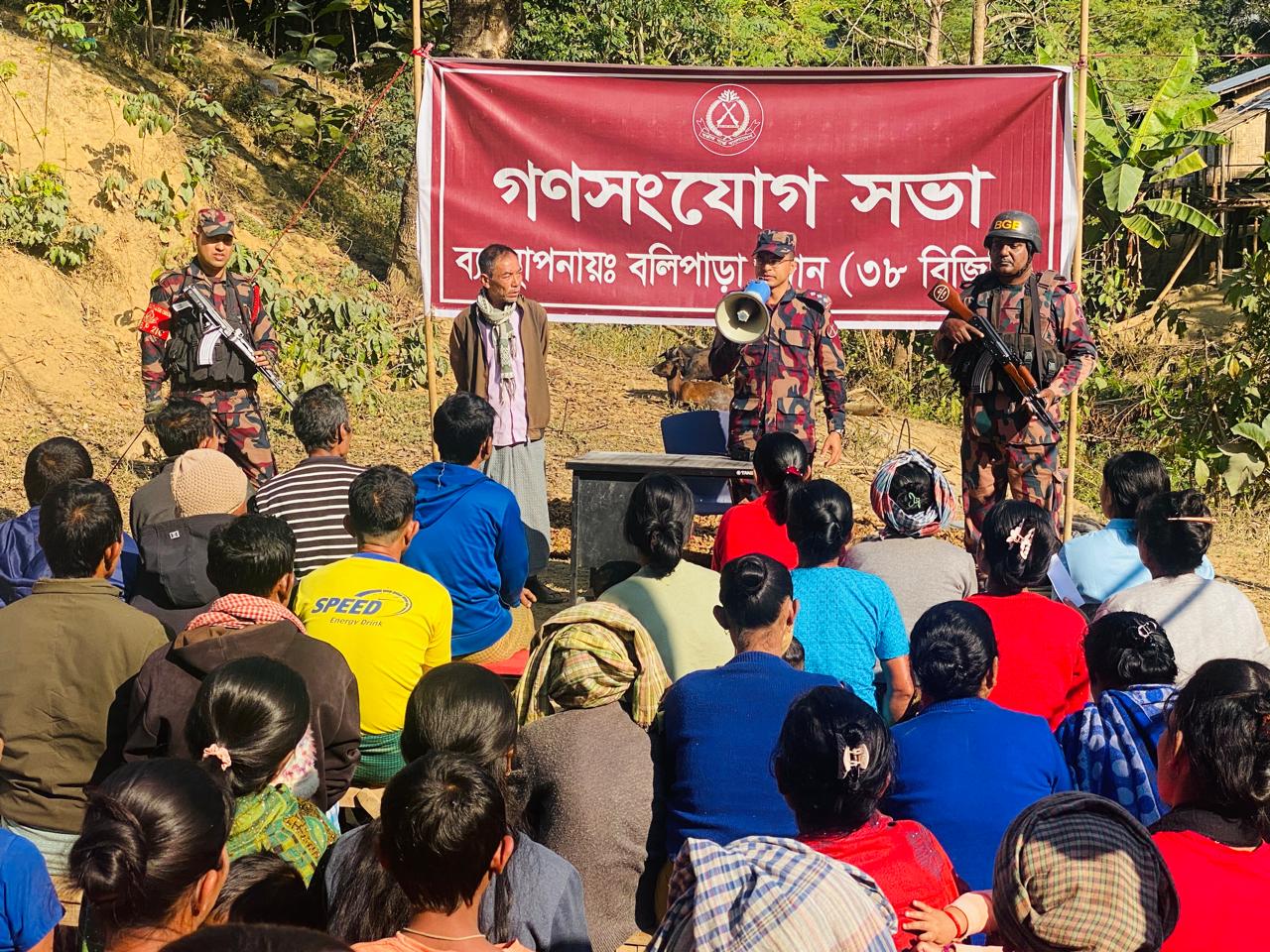 আসন্ন ত্রয়োদশ জাতীয় সংসদ নির্বাচন-২০২৬, সীমান্ত এলাকায় শান্তি, সম্প্রীতি ও আইন-শৃঙ্খলা পরিস্থিতি সুদৃঢ় রাখার লক্ষ্যে বলিপাড়া জোন (৩৮ বিজিবি) বান্দরবানের থানচি উপজেলার ক্যচুপাড়া এলাকার স্থানীয় জনসাধারণের সাথে গণসংযোগ সভা অনুষ্ঠিত হয়েছে।
