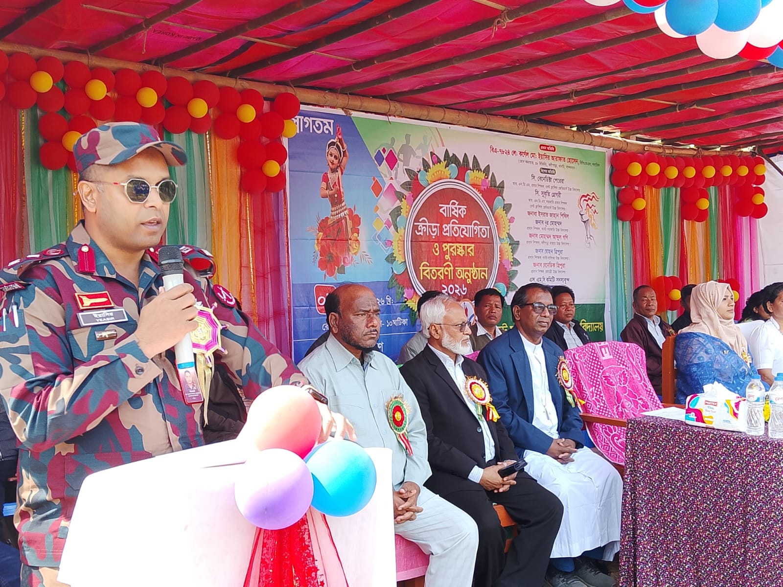 সোমবার (৯ ফেব্রুয়ারি) সকালে বার্ষিক ক্রীড়া প্রতিযোগিতা ও পুরস্কার বিতরণ অনুষ্ঠানে সভাপতিত্ব করেন, নিবেদিতা কুমারী মারিয়া ধর্মপল্লীর পাল পুরোহিত ফাদার শীতল এইচ রোজারিও সিএসসি। প্রধান অতিথি হিসেবে উপস্থিত ছিলেন, বলিপাড়া জোন (৩৮ বিজিবি) অধিনায়ক ও পরিচালক লেফটেন্যান্ট কর্নেল মোহাম্মদ ইয়াসির আরাফাত হোসেন, বিপিএমএস, পদাতিক।