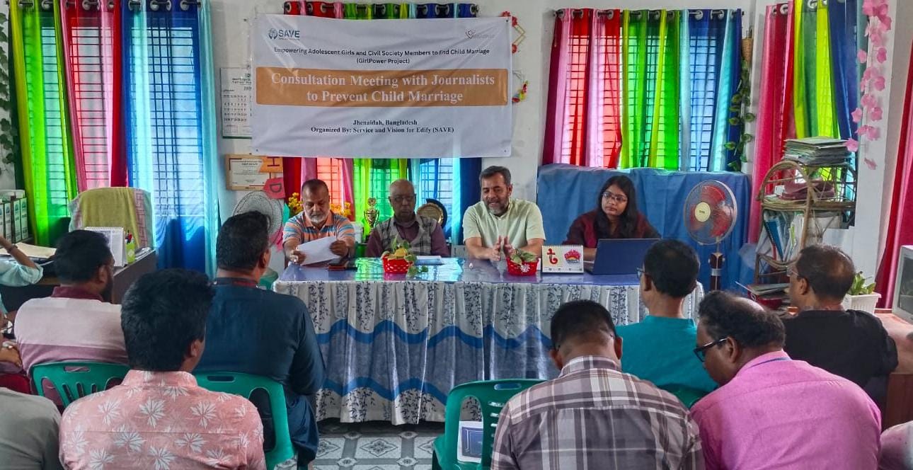 মোঃ আশরাফুল ইসলাম আসাদ মন্ডল(ঝিনাইদহ)প্রতিনিধিঃ ঝিনাইদহ বাল্যবিবাহ রোধে সাংবাদিকদের নিয়ে পরামর্শ সভা অনুষ্ঠিত হয়েছে। শুক্রবার দুপুরে শহরের পদ্মা সমাজ কল্যাণ সংস্থার সম্মেলন কক্ষে এ সভার আয়োজন করে বেসরকারি সেচ্ছাসেবী সংগঠন সার্ভিস এন্ড ভিশন ফর এডিফাই (সেভ)। সংগঠনটির নির্বাহী পরিচালক আয়শা সিদ্দীকা’র সভাপতিত্বে অনুষ্ঠানে অতিথি ছিলেন ঝিনাইদহ প্রেসক্লাবের সাবেক সভাপতি এম রায়হান, সিনিয়র সাংবাদিক বিমল কুমার সাহা, সেভ’র ভাইস প্রেসিডেন্ট মো: মনিরুজ্জামান সিদ্দিক।