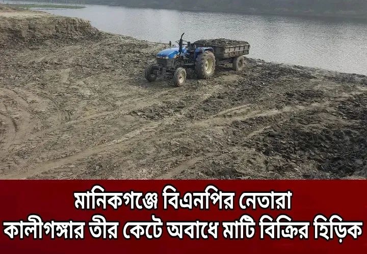 মানিকগঞ্জ সদর উপজেলার ভাড়ারিয়া ইউনিয়নের কলাশী, চৈল্ল্যা ও বালিবন এলাকায় দীর্ঘদিন ধরে কালীগঙ্গা নদীর পাড়ের মাটি অবৈধভাবে বিক্রির অভিযোগ উঠেছে স্থানীয় একটি বিএনপির নেতা চক্রের বিরুদ্ধে। এতে ভাঙনঝুঁকিতে রয়েছে আশেপাশের বসতবাড়ি এবং ফসলি জমি। দীর্ঘদিন ধরে দিনে-রাতে শত শত ট্রাকে মাটি লুট হলেও স্থানীয় প্রশাসন কোনো ব্যবস্থা নিচ্ছে না বলে অভিযোগ এলাকাবাসীর।