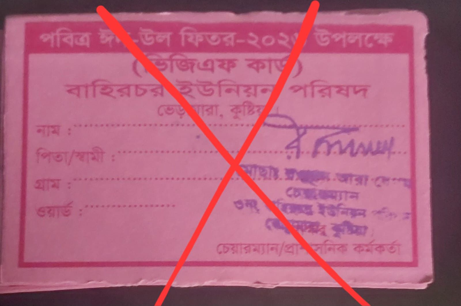 ভিজিএফ কার্ডের চাউল আগামী কাল দেয়া হবে না মর্মে ইউনিয়ন পরিষদের সদস্যগণ জানিয়েছেন। এবং সুস্থ ও সুন্দরভাবে বণ্টন না হওয়া পর্যন্ত চাউল দেয়া হবে না।