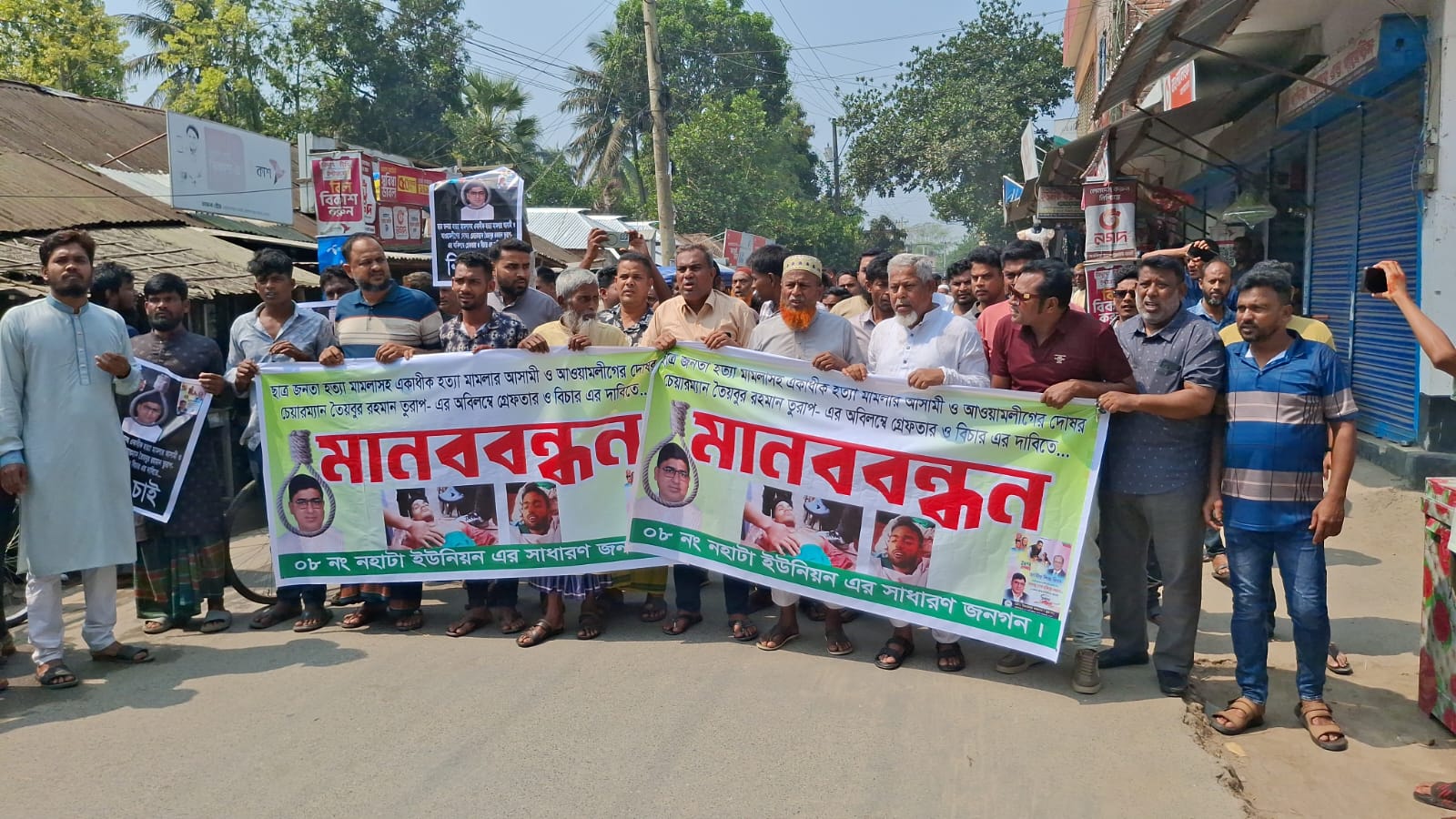 মঙ্গলবার সকাল ১১টায় উপজেলার নহাটা বাজারে ৮নং নহাটা ইউনিয়নের ব্যানারে স্থানীয় এলাকাবাসী এ কর্মসূচির আয়োজন করে।