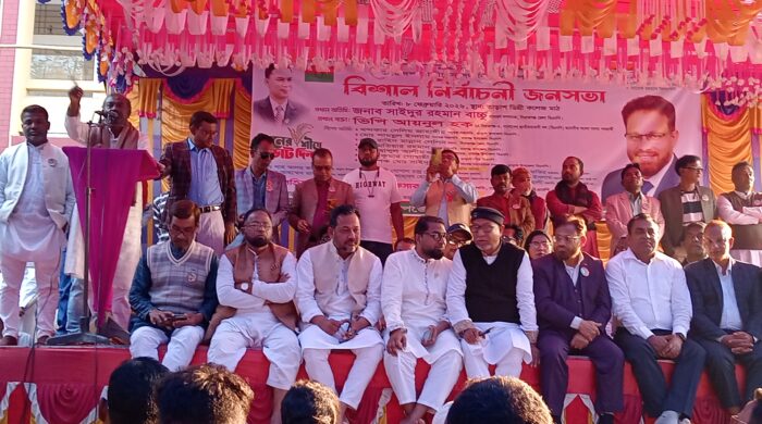নিজস্ব প্রতিনিধি ঃ ত্রয়োদশ জাতীয় সংসদ নির্বাচনকে সামনে রেখে সিরাজগঞ্জের তাড়াশ উপজেলায় উপজেলা বিএনপি, পৌর বিএনপি ও অঙ্গসংগঠনের উদ্যোগে এক বিশাল নির্বাচনী জনসভা অনুষ্ঠিত হয়েছে। রবিবার (৮ ফেব্রুয়ারি) বিকেলে তাড়াশ