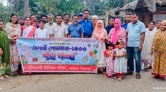সোহেল রায়হান, জেলা প্রতিনিধি (পিরোজপুর)ঃ পহেলা বৈশাখ ১৪৩৩ বঙ্গাব্দ উপলক্ষে পিরোজপুরের নেছারাবাদ উপজেলার সুটিয়াকাঠি ইউনিয়ন পরিষদের উদ্যোগে এক বর্ণাঢ্য বৈশাখী র্যালির আয়োজন করা হয়েছে। বাংলা নববর্ষকে বরণ করে নিতে ইউনিয়ন