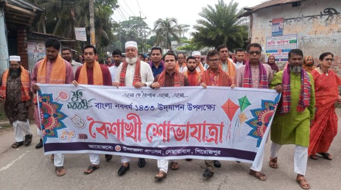 সোহেল রায়হান, জেলা প্রতিনিধি (পিরোজপুর) ঃ বাংলা নববর্ষ ১৪৩৩ উদযাপন উপলক্ষে পিরোজপুরের নেছারাবাদ উপজেলা প্রশাসনের আয়োজনে বর্ণাঢ্য বর্ষবরণ অনুষ্ঠান, র্যালি ও বৈশাখী মেলার উদ্বোধন করা হয়েছে। পহেলা বৈশাখের সকালে উপজেলা